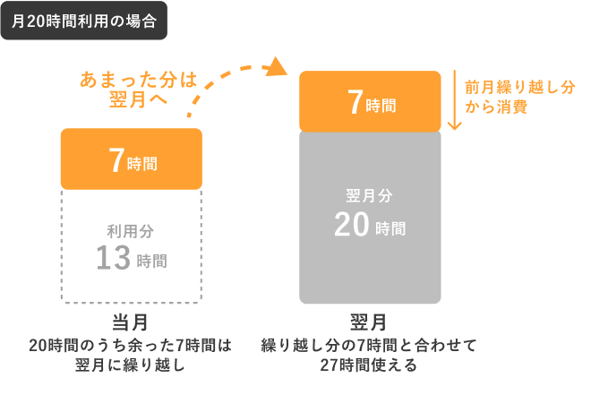 多くのサービスは「使わなかった分は消滅」が当たり前ですが、URAKATAなら翌月まで時間繰り越し可能。 忙しい月や業務量が少ない月でも損することなく、契約時間を 100%有効活用できます。